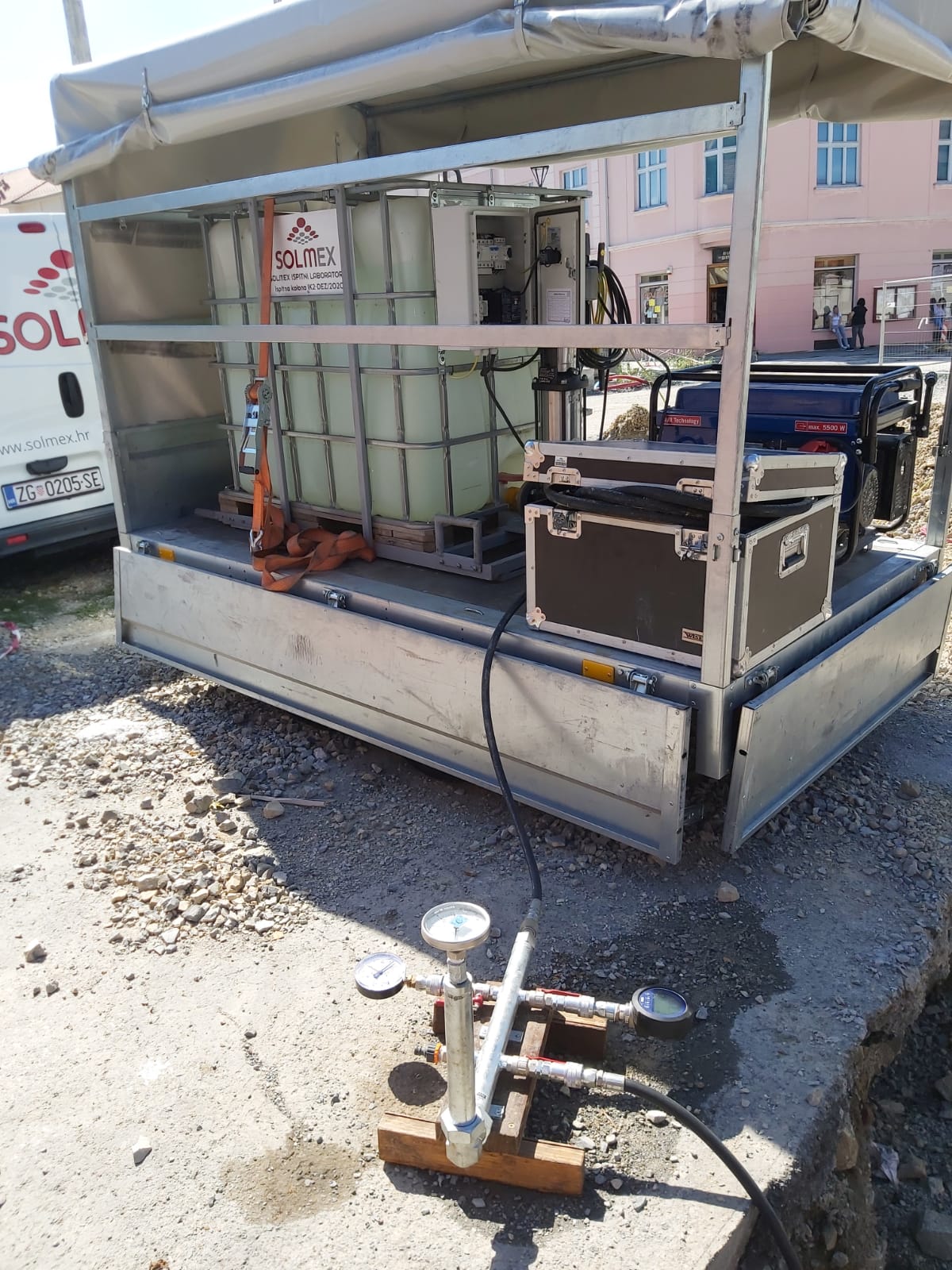 Kada je riječ od vodoopskrbnim sustavima, osnovna ispitna metoda je tlačno ispitivanje prema normi HRN EN 805:2005. Tlačno ispitivanje osnovna je provjera kvalitete i funkcionalnosti novoizgrađenih i postojećih vodoopskrbnih sustava. Solmex ispitni laboratorij raspolaže specijalno prilagođenom opremom koja uključuje spremnik vode, visokotlačnu pumpu, ispitnu kolonu te instrumente. Navedena oprema omogućava brzo i učinkovito ispitivanje tlačnih cjevovoda, uz praćenje kompletnog procesa ispitivanja, od faze punjenja pa sve do faze ispitivanja.